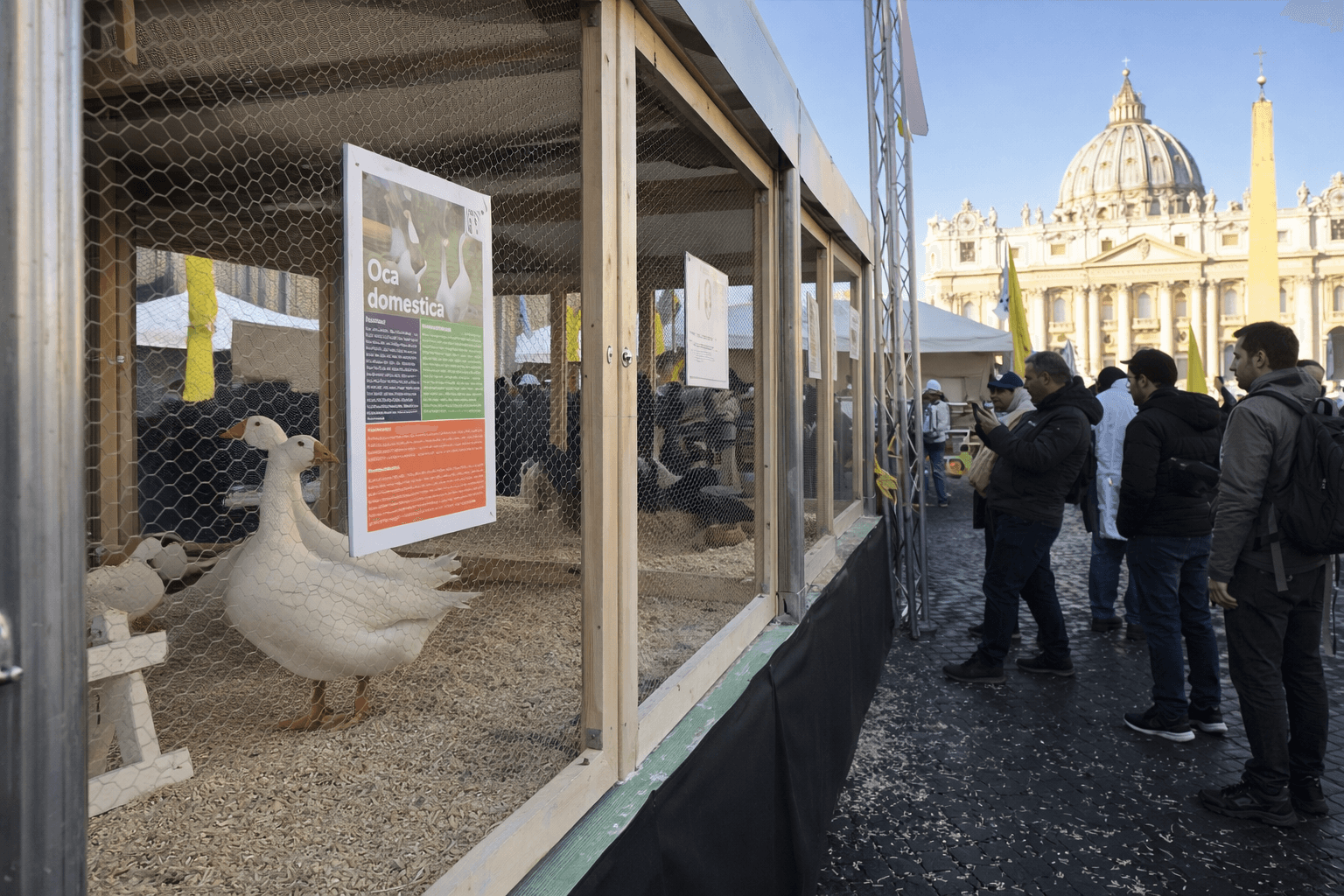 Ce n’est qu’à l’issue de la Célébration Eucharistique que l’attention se déplacera à l’extérieur de la basilique. Sur la place Pie XII, une étable à ciel ouvert sera installée, accueillant des animaux d’élevage et domestiques provenant de différentes associations agricoles. Vaches, ânes, chevaux, moutons, poules, mais aussi chiens et chats, offriront une image concrète du lien entre l’homme, la nature et la création.
